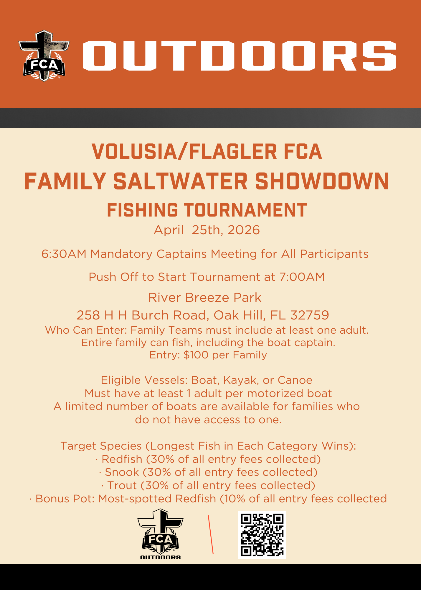 Voluisa/Flagler FCA Outdoors is excited to host our first Family Saltwater Showdown!